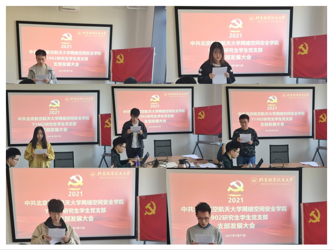 2021年3月31日上午10时,北航滚球买球的app官网Y1902学生党支部在一号馆408会议室召开支部党员发展大会,讨论能否接收曹银浩、韩祎然、刘翔宇、魏晨光、吴礼金、张伟豪、王庆麟7名同志为中共预备党员。本次大会由党支部书记陈晨主持,党建特邀组织员邓彦敏老师、专职组织员王倩云老师、专职辅导员杜逸雯老师列席本次会议。支部党员应到5人,实到5人。