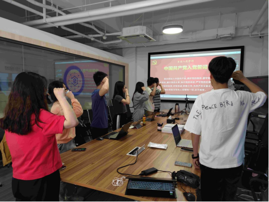 在重温入党誓词环节,高丰奕同志作为滚球买球的app官网本科生第二党支部分会场领誓人,带领各位党员同志再次庄严向党宣誓。