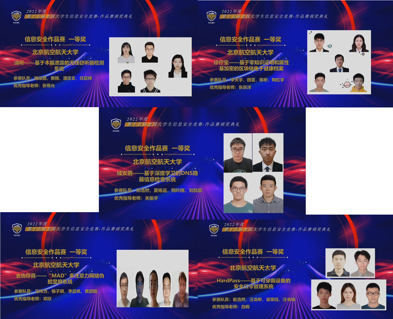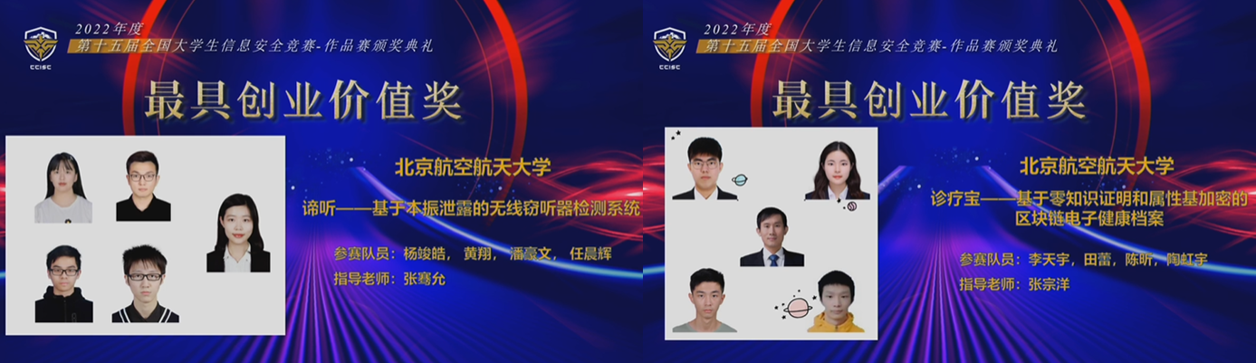 据悉,全国大学生信息安全竞赛自2008年起,已连续举办十五届,是我国级别最高、覆盖范围最广、影响力最大的大学生信息安全类竞赛,第十三届全国大学生信息安全竞赛作品赛由教育部高等学校网络空间安全专业教学指导委员会主办,滚球买球的app官网承办。本届作品赛由中国互联网发展基金会主办,湖南大学承办,经过初赛选拔,全国共有310支队伍晋级总决赛,决赛通过长沙主赛区和杭州分赛区开展,根据作品内容分为系统安全、安全检测、网络安全、应用安全/内容安全、数据安全等10个小组,各小组以视频答辩、匿名评审的方式进行,最终40支队伍获得一等奖,北航占了1/8,其中最具创业价值奖10项,北航占1/5,60支队伍获得二等奖,80支队伍获得三等奖。