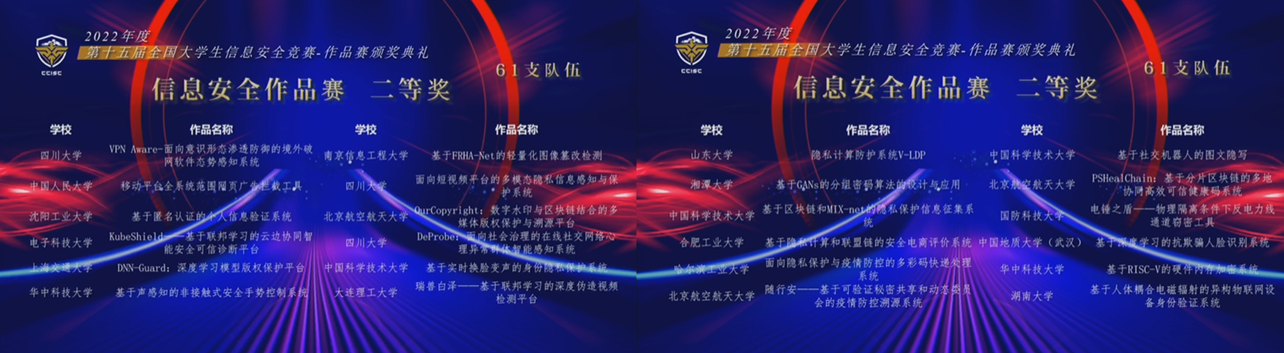 2022年8月22日,第十五届全国大学生信息安全竞赛—作品赛颁奖典礼在湖南长沙举行。滚球买球的app官网8支参赛队入围决赛,获一等奖5项,二等奖3项,最具创业价值奖2项。