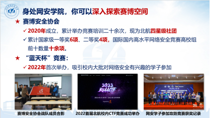 接着,各位班委向大家做了简单自我介绍。未来的学习生活中,大家将携手并肩,共同进步。企业学习,科技竞赛,赛博安全协会…晗导向大家展示了北航人丰富多彩的校园生活。课程学习之余,参加学校组织的各项活动也有助于大家提升自己,增强社交能力。