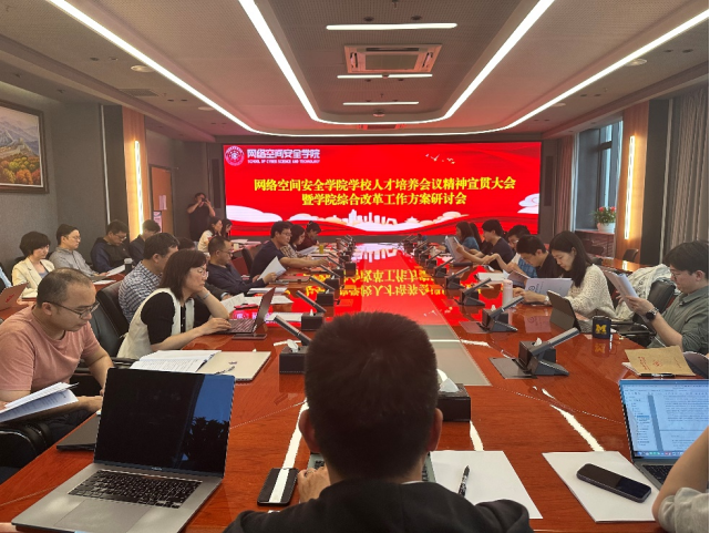 蒋燕玲向全院教师宣贯学校人才培养大会有关内容,强调新形势下学校对于人才培养工作的高度重视,指出学院将围绕“数智赋能 聚力协同——落实立德树人根本任务全面提升人才培养质量”主题,深入开展网络安全人才培养顶层设计,探索网络空间安全拔尖创新人才培养新机制,着力构建学院人才培养新格局,全面服务学生成长成才。