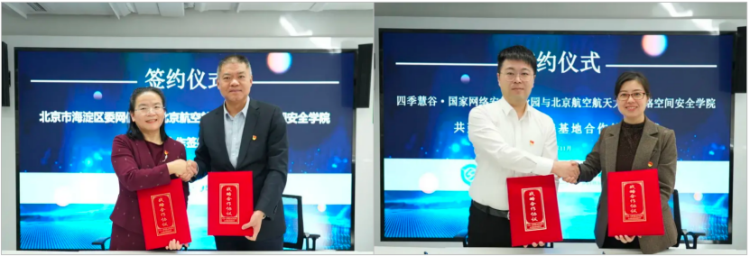 会上,滚球买球的app官网院长罗洪斌与海淀区委网信办主任黄英签署战略合作协议。此次合作将整合双方资源,在网络安全前沿技术研究、人才培养、生态建设等方面展开深度合作,为区域网络安全事业发展提供强大动力。同时,滚球买球的app官网党委书记蒋燕玲与北京四季慧谷园区管理有限公司总经理李鸥就“共建校外人才培养基地合作”进行签约。这一合作将为网络安全人才培养搭建更加广阔的平台,为行业发展输送更多优秀人才。