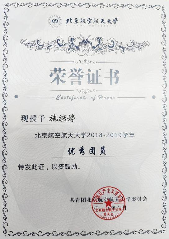 为加强我校共青团的基层组织建设,推动团支部职能化建设,围绕立德树人根本任务,激励基层团支部学习贯彻习近平新时代中国特色社会主义思想,以“四进”为手段,以“四信”为目标,切实学习和践行社会主义核心价值观,弘扬北航“四爱精神”,深入开展“青春心向党·建功新时代”教育实践,创先争优,激励和引导广大团员大力弘扬爱国主义精神,推动各级团组织工作水平的提高。校团委在全校开展2018—2019学年度校 “优秀团员”评选活动,滚球优秀学生张英鹏、施继婷获2018—2019学年度校“优秀团员”,予以表彰。
