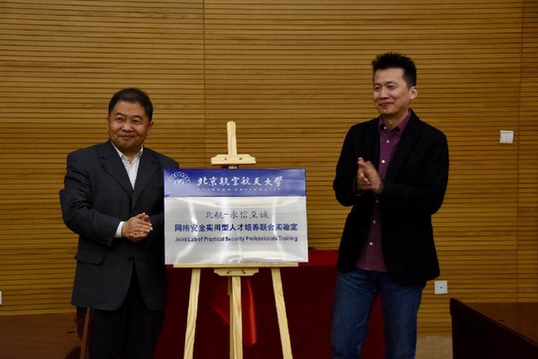 北航副校长房建成院士、永信至诚董事长蔡晶晶为“北航—永信至诚网络安全实用型人才培养联合实验室”揭牌