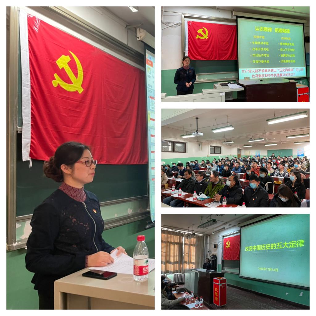 随后,蒋燕玲书记为大家带来了以“中国历史的五个定律”为题的廉政党课,从历史唯物主义的角度出发、引经据典,向大家介绍了中国历史上各个朝代兴衰的内在规律,特别是朝代衰败给后人的教训。以史为鉴,蒋燕玲老师告诫全体与会党员要保持为人民服务的初心,走出“舒适圈”和“包围网”,戒骄戒躁,克制贪欲,摒弃“象牙筷”,在困难与竞争中时刻保持政治意识、大局意识、核心意识与看齐意识,真正跳出“历史周期率”的约束。