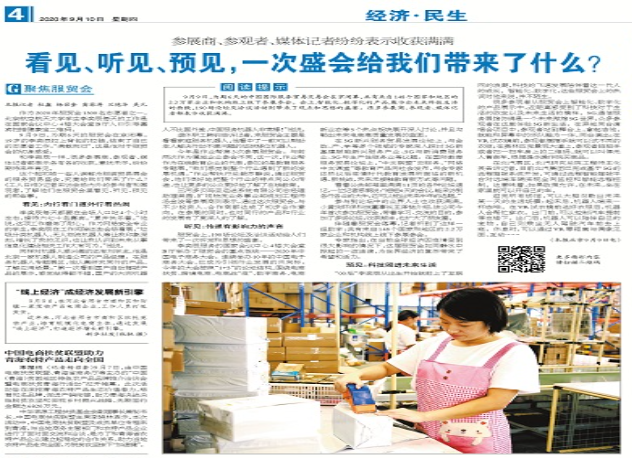 在5G新兴服务贸易发展论坛上,与会政、产、学等多个领域的专家深入探讨5G新基建赋能新兴服务产业、5G与新消费服务业、5G与生产性服务业等议题;在国际教育服务贸易论坛上,“中文联盟”云服务、“网络中文课堂”等教育产品向社会发布,与会专家还热议后疫情时代教育发展所面临的新机遇、新挑战,未来无接触教育新方式等问题;在当前的形势下,中国经济如何破局攻坚,摆脱疫情带来的影响?金融机构怎样把握金融发展新机遇,更好服务实体经济?数字金融的未来是什么?这些外界关注的热点议题,在2020年中国国际金融年度论坛上都能找到不同的解答······