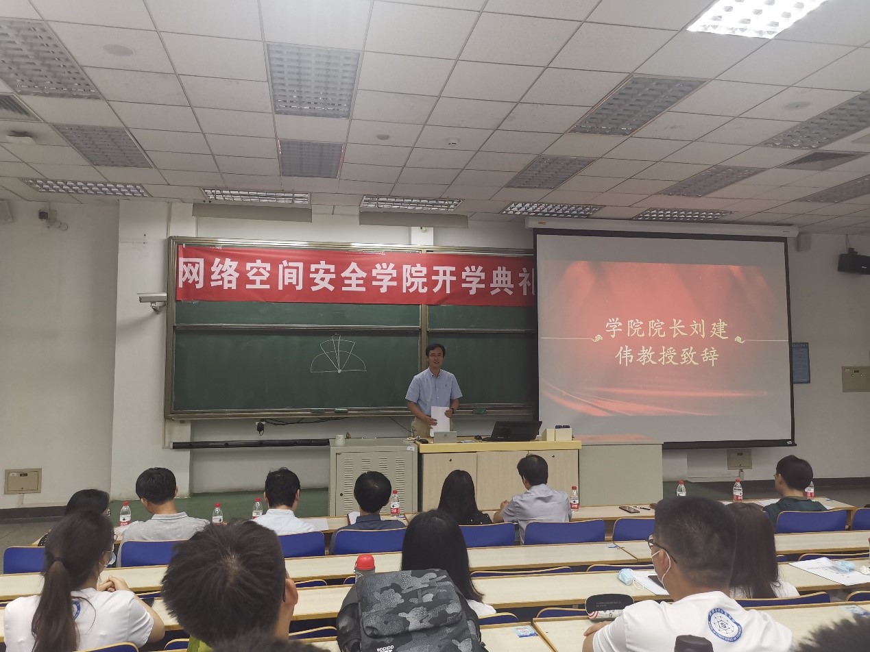 院长刘建伟教授对新生同学们给予了殷切的期望,叮嘱同学们在保持身心健康的同时,诚信踏实做科研,在有困难的时候积极与老师同学们沟通,在网安学院度过快乐并有意义的研究生生涯。